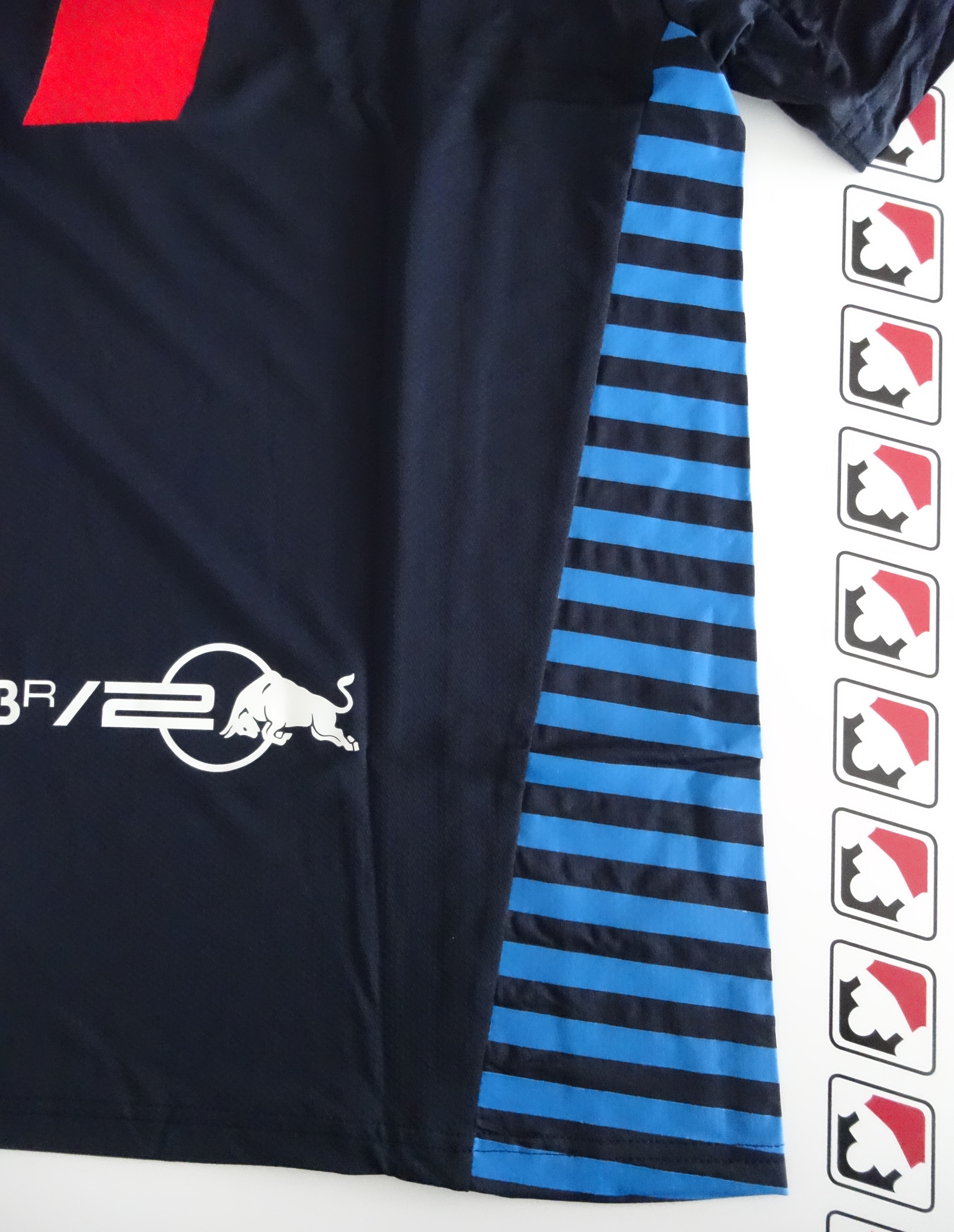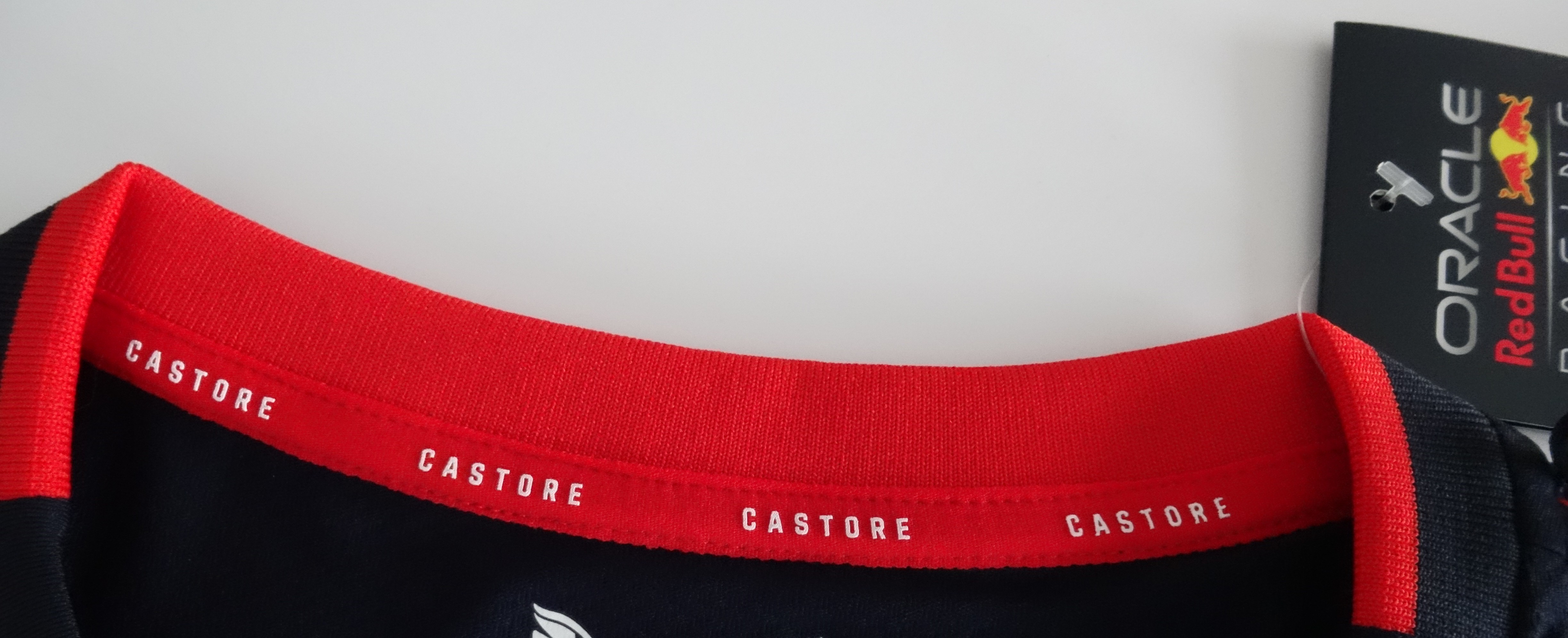 Schulter & Details: Ein markantes gelbes Patch mit den ikonischen roten Red-Bull-Stieren ziert die linke Schulter. Das Castore-Flügel-Logo findet sich dezent auf der rechten Schulter und im Nackenbereich.